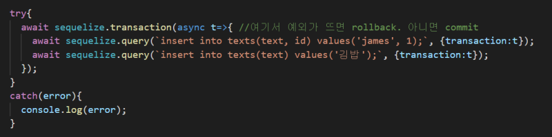 ๊ทธ๋ฆฌ๊ณ ํด๋น ์ฝ๋ฐฑํจ์์์ ๋ญ๋ผ๋ ์์ธ๊ฐ ๋ฐ์ํ๋ฉด rollback์ ์ํํ๊ณ ,