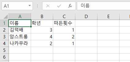그 밑의 행도 작성해보자.