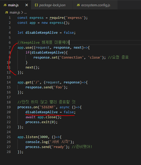 Keep-Alive가 사용중일 때는 app.close만으로 클라이언트와의 연결이 완전히 해제되지 않는다.