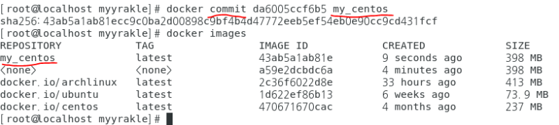 저장하려면 commit 명령을 쓰면 된다. 첫번째 인자가 컨테이너의 식별자, 두번째 인자가 저장될 이름이다.