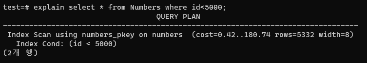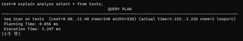 물론 이건 postgres에서 임의로 정해놓은 비용 점수라서 실제와는 다를 수 있다.