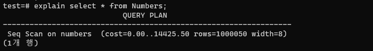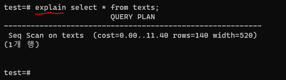postgres에서는 explain 명령을 통해 특정 쿼리의 비용을 계산할 수 있다.