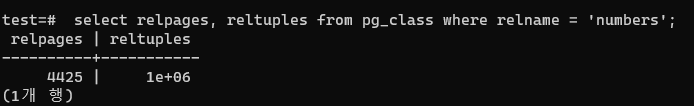 relpage가 블럭의 개수고, reltuple이 Row 데이터 개수다.