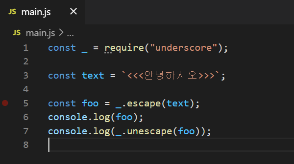 html 소스에서의 특수문자들을 이스케이핑 처리해주는 함수다.