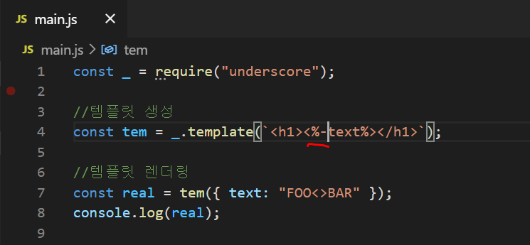 그럴때는 escape가 되는 <%-%>구문을 사용한다.