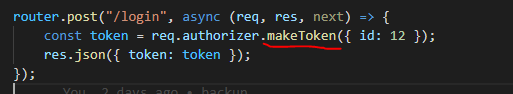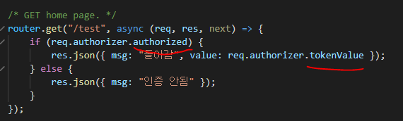 ๊ทธ๋ฆฌ๊ณ ์ด๋ฐ์ ๋ฐ ์์ ํจ์๋ค์ ์ ๋ถ req.authorizer์ ๋ฑ๋ก๋๋ค.