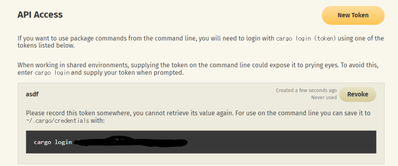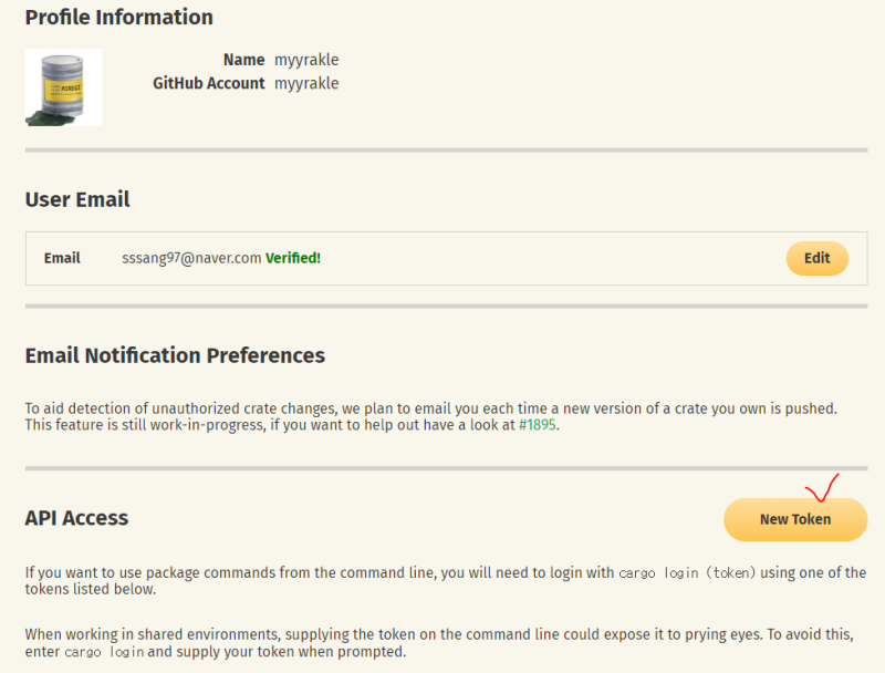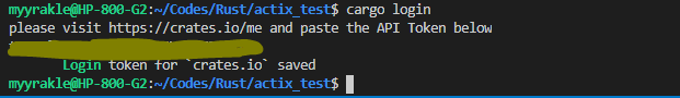 cargo login 으로 로그인.
