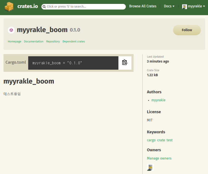 keywords = ["test", "cargo", "crate"] #검색용 키워드