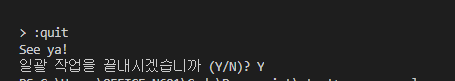 나가려면 :quit를 치면 된다.
