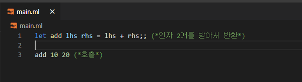 ํจ์๋ Ocaml์ ํ๋ก๊ทธ๋จ ๊ธฐ๋ณธ ๋จ์๋ค.