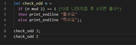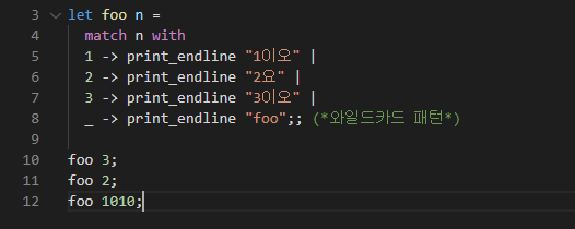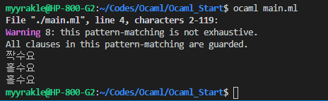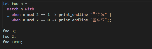 ocaml๋ ํจ์ํ ์ธ์ด๋ต๊ฒ ํจํด๋งค์นญ ๊ตฌ๋ฌธ์ ์ง์ํ๋ค.