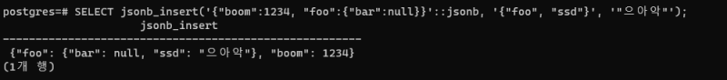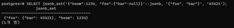 ํ ๋๋ jsonb_set์ด๋ jsonb_insert ๋ฑ์ ์ ์ฉ ํจ์๋ฅผ ์ฌ์ฉํ๋ค.