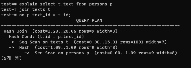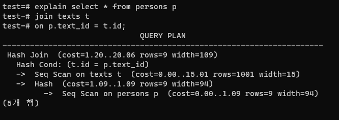 ์ด๋ธ์ ๋น๊ต(Hash Cond)ํด ์กฐ์ธ์ ์ํํ๋ค๋ ๋ป์ด๋ค.