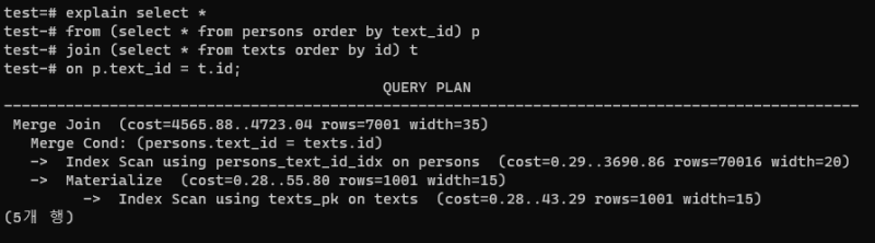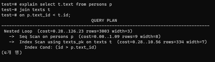 text_id๊ณผ t.id ๋๋ค ์ธ๋ฑ์ค๊ฐ ๊ฑธ๋ ธ์์๋ ์์ฐจ์ค์บ๋ง์ผ๋ก ํด์์กฐ์ธ์ ํด๋ฒ๋ ธ๋ค.