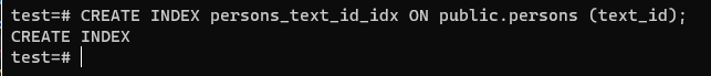 ๋๋ฌธ์ text_id์ ์ธ๋ฑ์ค๋ฅผ ์ถ๊ฐํ๊ฒ ๋ค.