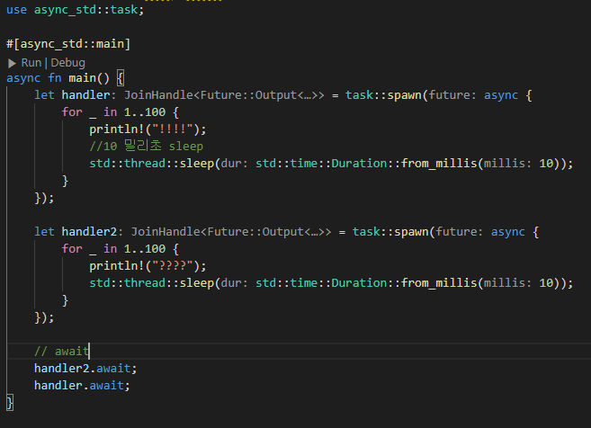 ์ค๋ ๋๋ฅผ ์ถ๊ฐ๋ก ๋๋ฆฌ๋๋ฐ, ๋์ async Future๋ฅผ ๋ฐํํด ํธ๋ค๋ง์ด ๋ ํธํ๋ค.