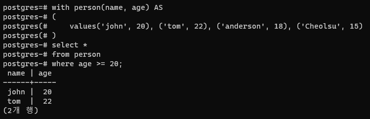 [PostgreSQL] 임시 테이블 생성