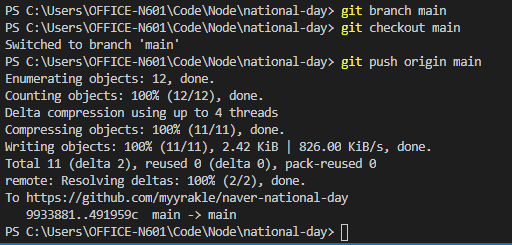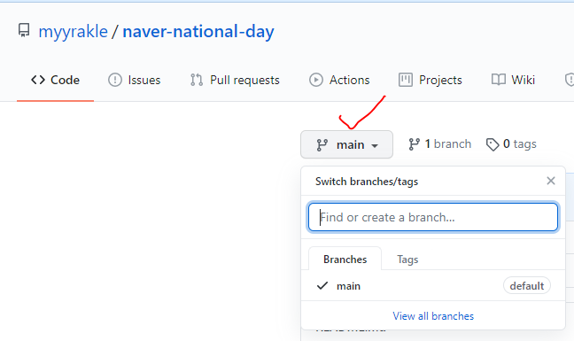 그래서 깃헙이가 원하는대로 main 만들어서 맞춰줬다.