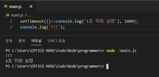첫번째 인자가 콜백함수고, 두번째 인자가 타이머를 설정할 밀리초 단위 시간이다.
