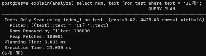 ์ด๋ฌ๋ฉด ์ค์ ๋ก text๋ผ๋ ์ปฌ๋ผ์ด num์ด๋ผ๋ ์ธ๋ฑ์ค์ [ํฌํจ]๋๋ค.