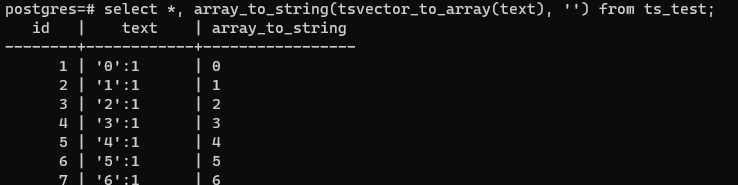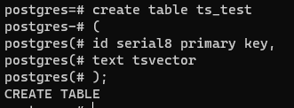tsvector์ ts๋ text search์ ์ถ์ฝ์ด๋ค. ๋ง ๊ทธ๋๋ก ํ