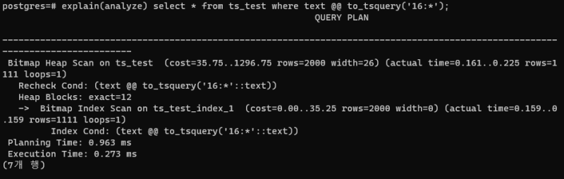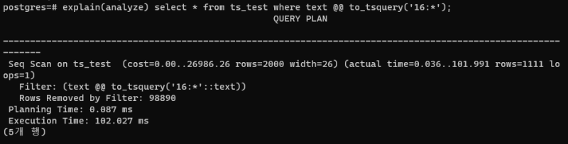 ์ด๊ฑด like ๋์ @@ ์ฐ์ฐ์์ tsquery ๊ฐ์ผ๋ก ๊ฒ์์ ์ํํ๋ค.