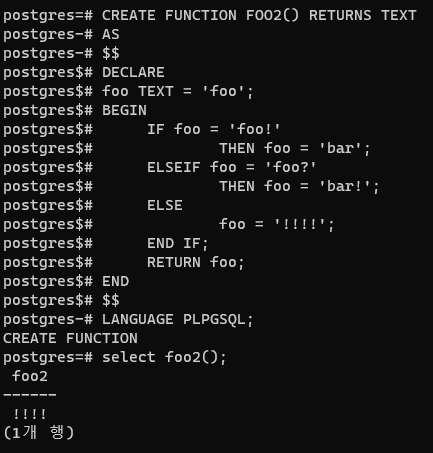 plpgsql도 일반적인 언어들과 마찬가지로 제어문을 통한 분기 처리를 제공한다.
