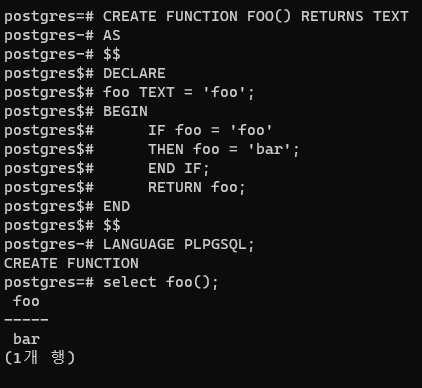 CREATE FUNCTION FOO() RETURNS TEXT