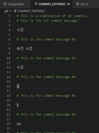 이건 지금 커밋으로 이전 커밋을 찍어눌러버린다.