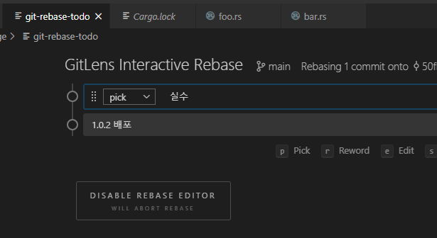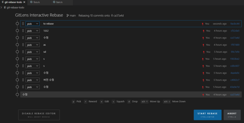 그러면 rebase 창으로 진입해서