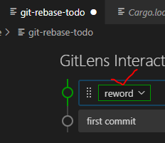바꿀 항목을 reword로 선택한 뒤 start rebase 버튼을 누른다.