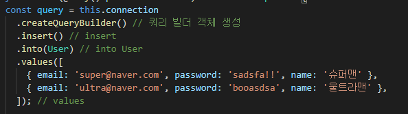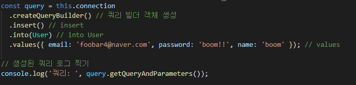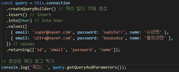 [TypeORM] ์ฟผ๋ฆฌ๋น๋: insert