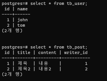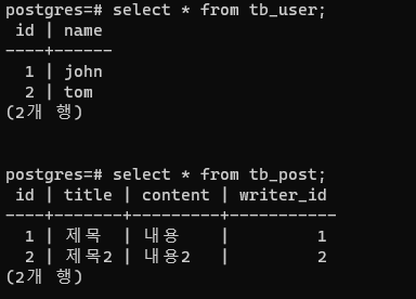 ์ฌ๊ธฐ์ tb_post์ writer_id ์ปฌ๋ผ์ด ๋ฐ๋ก tb_user์ id๋ฅผ ๊ฐ๋ฆฌํค๋ ์ฌ์ค์์ ์ธ๋ํค ์ปฌ๋ผ์ด๋ค.