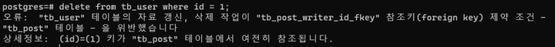 ์ฐธ์กฐ๋๊ณ ์๋ tb_user 1์ ์ญ์ ํ๋ ค๊ณ ํ๋ค๋ฉด
