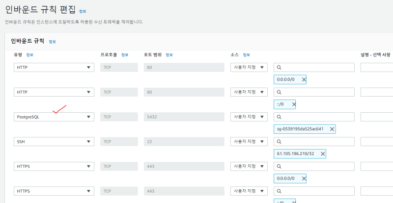 ์ฌ๊ธฐ์ ์ง์ ํ ๋ณด์๊ทธ๋ฃน์ด Postgres์์ ์ฌ์ฉํ ๋ณด์๊ทธ๋ฃน-์ธ๋ฐ์ด๋ ๊ท์น์ ์์ด์ผ ํ๋ค.