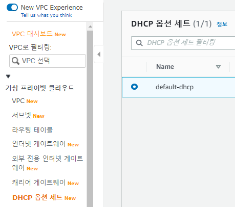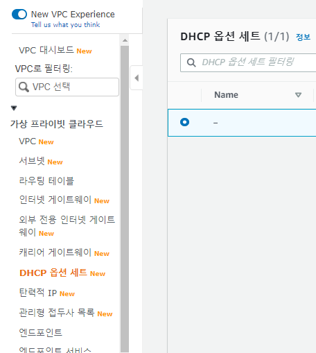 ๋์๋ณด๋์์ VPC ๋ง๋ฒ์ฌ๋ฅผ ํด๋ฆญํ๋ค.