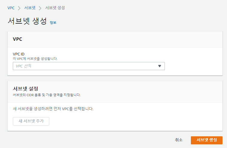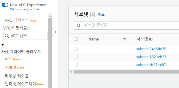 ์ด์ VPC ์๋์๋ค ์ฌ์ฉํ ์๋ธ๋ท์ ์์ฑํด์ฃผ์.