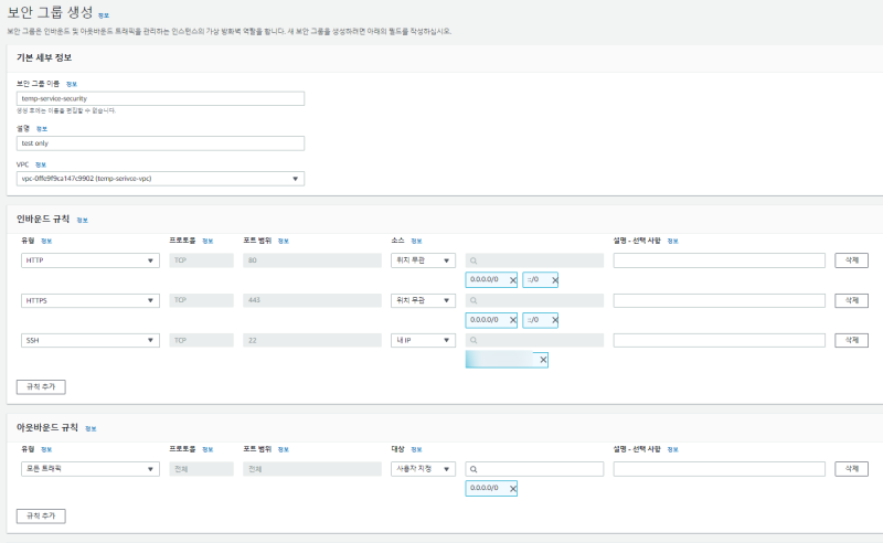 VPC๋ฅผ ์ง์ ํ๊ณ ๊ณต๊ฐํ ํํ๋ฅผ [์ธ๋ฐ์ด๋ ๊ท์น]์์ ์ถ๊ฐํ๋ค.