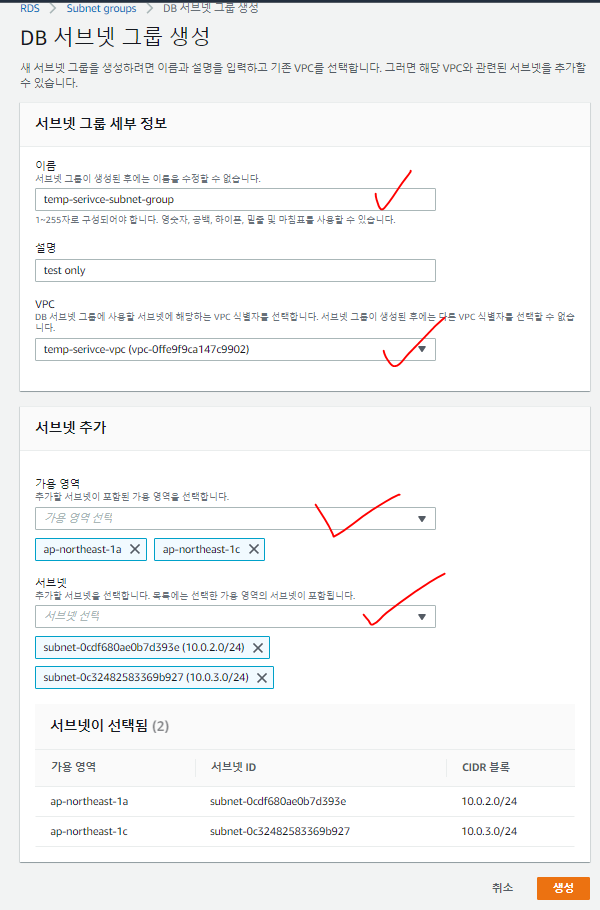 RDS-์๋ธ๋ท ๊ทธ๋ฃน ์์ฑ