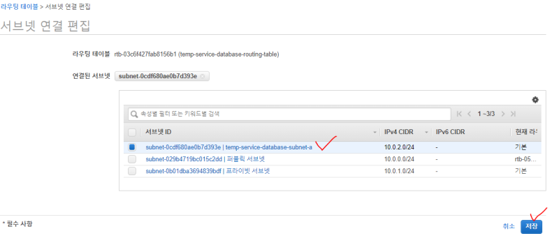 ๋ฐ์ดํฐ๋ฒ ์ด์ค์ ์ฌ์ฉํ ์๋ธ๋ท ๊ทธ๋ฃน์ ์์ฑํ๋ค. ์ด๊ฑธ๋ก RDS๊ฐ ์ด๋์ ๋์ผ์ง๋ฅผ ์ ์ํ ๊ฒ์ด๋ค.