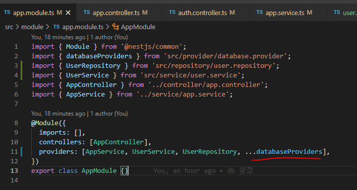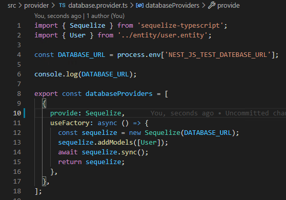 그리고 우리는 NestJS의 패턴에 맞춰서 시퀄라이즈 커넥션을 프로바이더로 생성, 동적으로 주입할 수 있게 할 것이다.