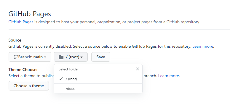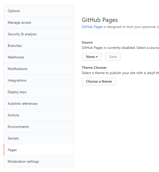 Setting->Pages 항목으로 이동한다.