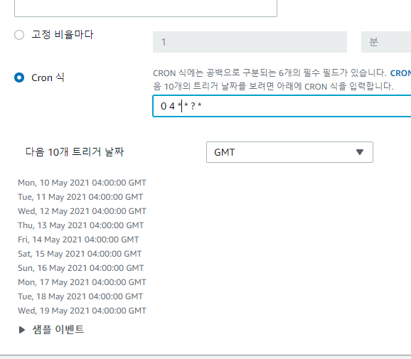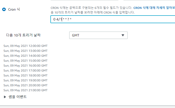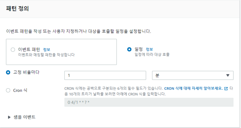 여기서 어떤 시간 조건에 맞춰 서비스가 호출되게 할지 지정할 수 있다.