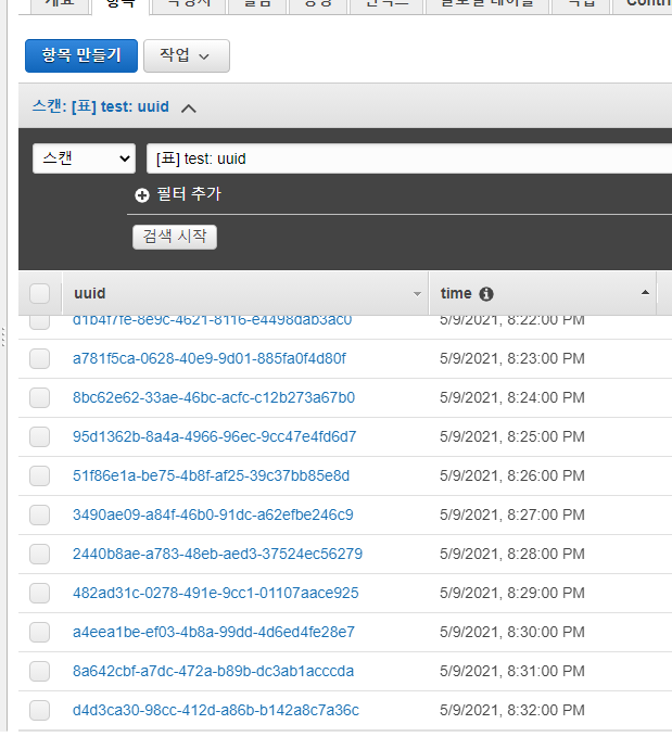 그리고 좀 기다려보면 1분마다 저렇게 람다가 실행돼서 값을 넣어줄 것이다.