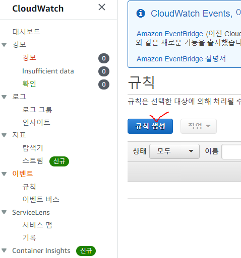 이벤트-규칙에 들어가서