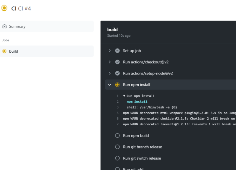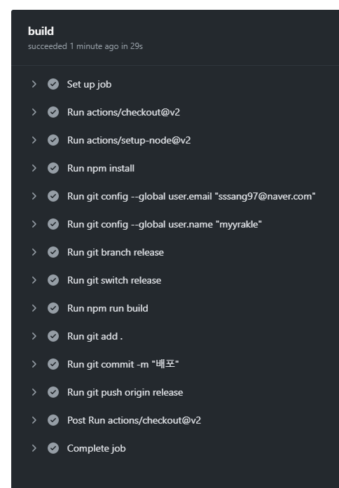 노드 추가하고. 설치 후 빌드한 다음에 release 브랜치로 push하도록 했다.