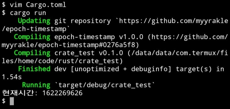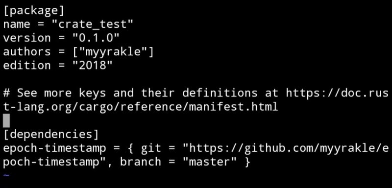crate를 땡겨쓰는 가장 대표적인 방법은, crates.io에 배포되어있는 것을 패키지명으로 사용하는 것이다.