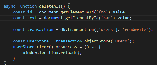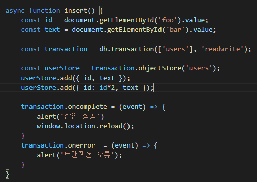 IndexedDB๋ ๊ธฐ์กด์ DB๋ค๊ณผ ๋ค๋ฅด๊ฒ, ์ฝ๊ธฐ๋ ์ฐ๊ธฐ๋ฅผ ํ ๋ ํญ์ ๋ช