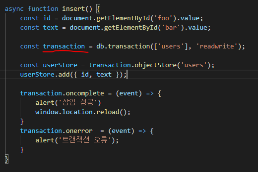 https://developer.mozilla.org/ko/docs/Web/API/IndexedDB_API/Using_IndexedDB