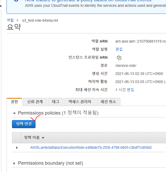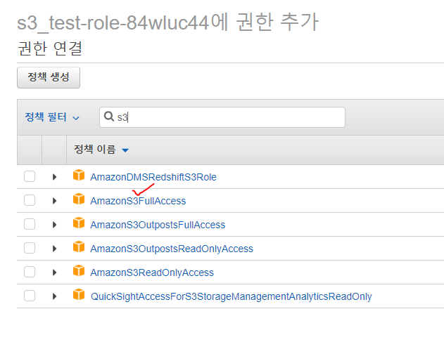 s3 ๊ถํ์ ์ฐ๊ฒฐํด์ค๋ค.
